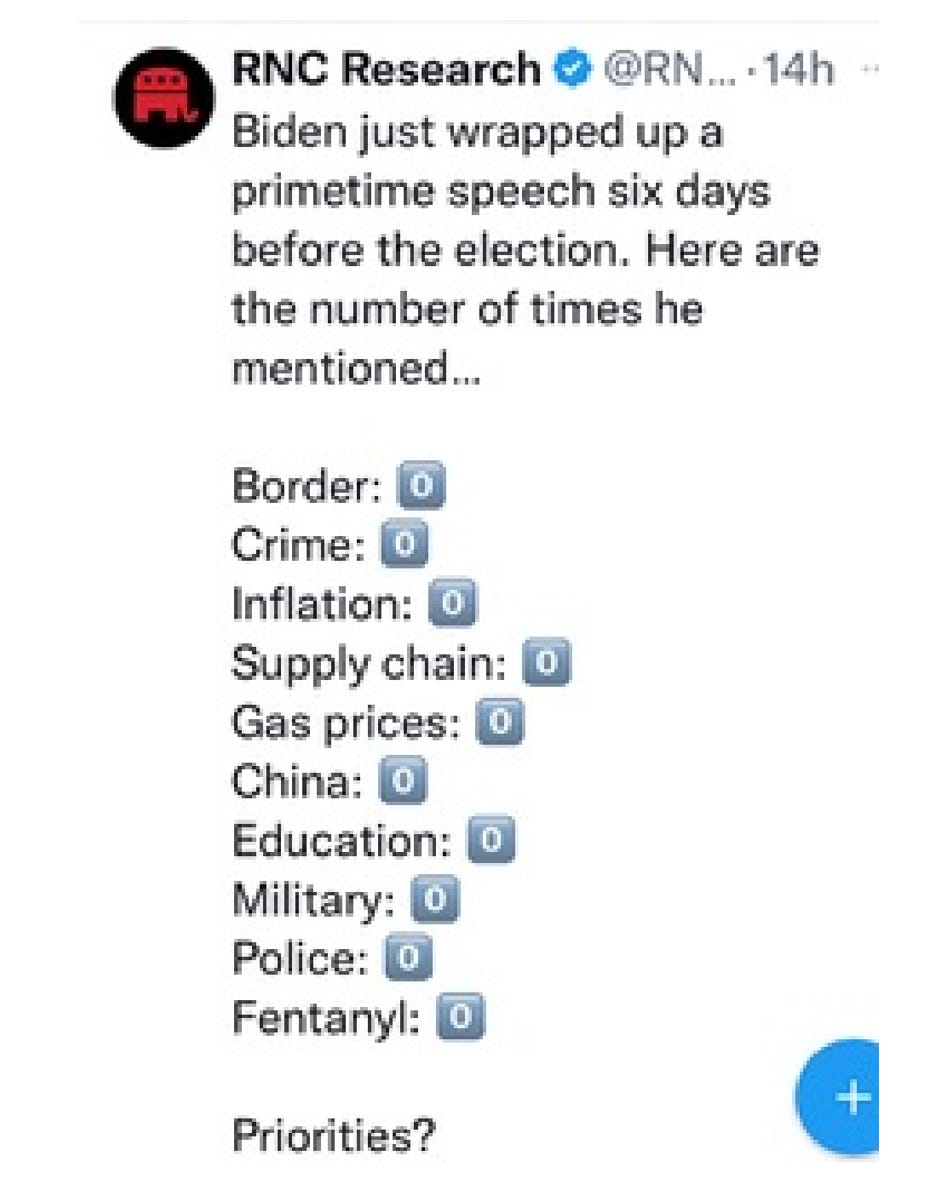 7- If you happen to see that weird, desperate, divisive lecture from the weak, confused person occupying the White House, you may have noted his theme was that Republicans are violent. Of course, this is a baldfaced lie. Here are a few topics he could not talk about as he has FAILED on all them. THIS is why voting is vital. Pass it on...