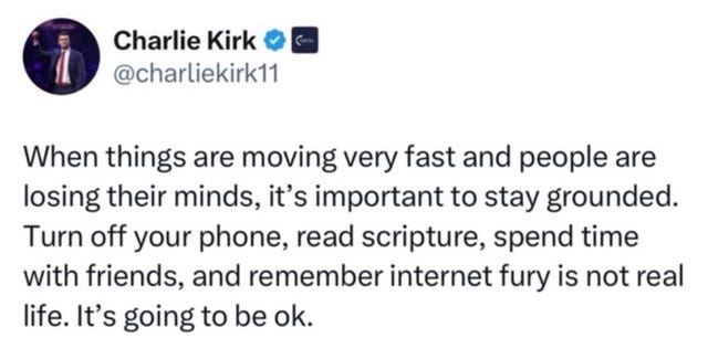 The anger, grief and sheer heartbreak over the murder of Charlie Kirk come at us in waves that threaten to overpower us.