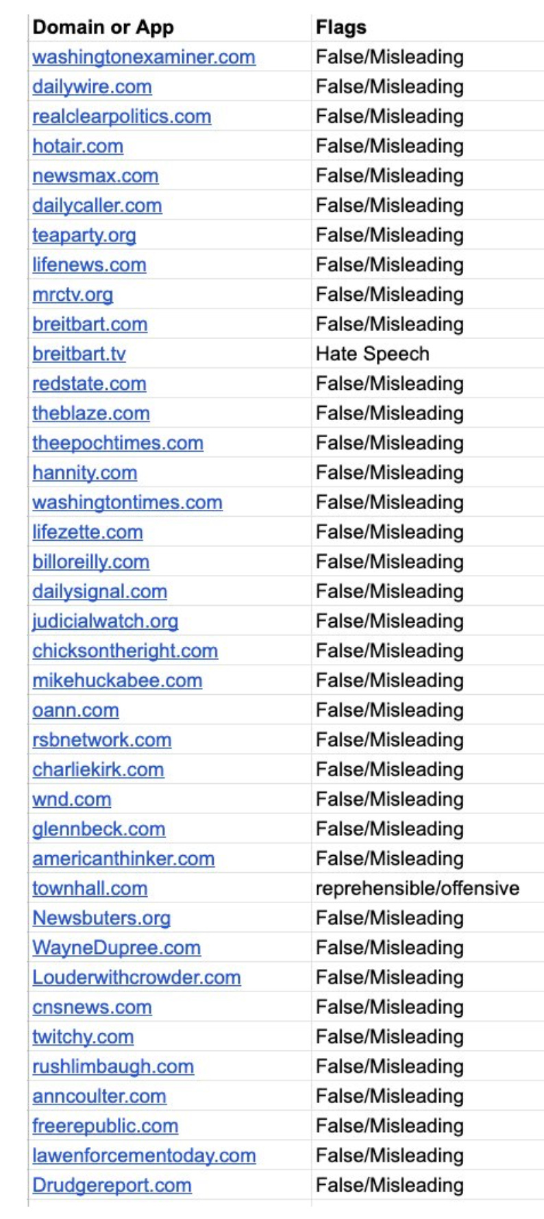 The blacklist includes nearly a who’s-who of American conservative platforms – including HotAir and our sister sites Twitchy, RedState, and Townhall: